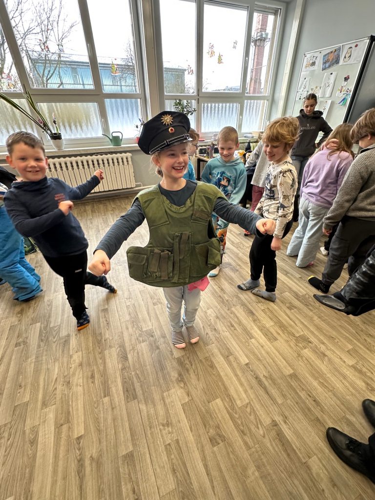 Unsere 1. und 2. Klasse schmückte einen Weihnachtsbaum für die Polizeistation Löcknitz